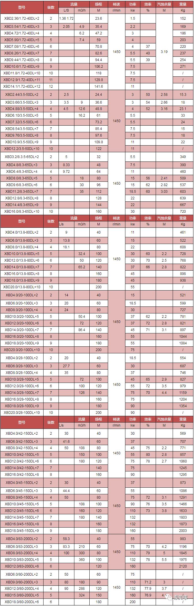 XBD消防泵技術(shù)參數(shù):
