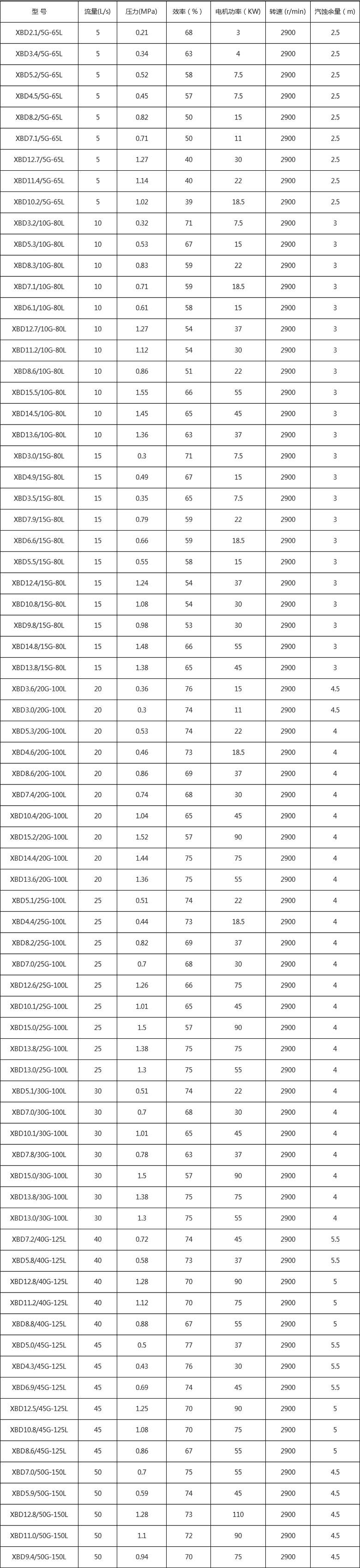 3、性能參數(shù)在滿足消防工況的前提下,兼顧生活(生產(chǎn))給水的工況要求,該產(chǎn)品即可用于獨(dú)立消防給水系統(tǒng),又可用于消防、生活(生產(chǎn))共用給水系統(tǒng),還可用于建筑、市政、工礦給排水以及鍋爐給水等場合。